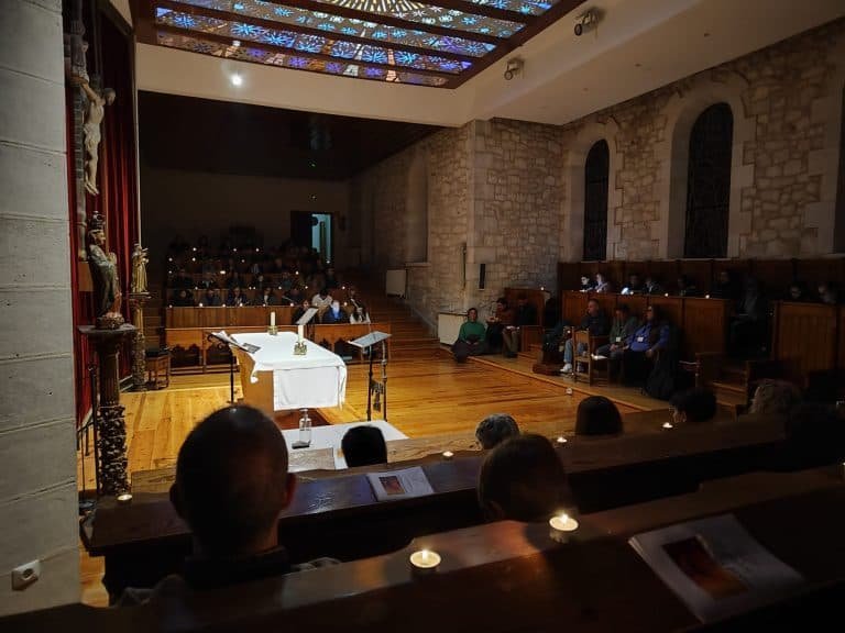 Después de la cena compartida celebramos la vigilia, momento especial de reflexión personal, oración e interioridad, en el que paramos nuestros relojes y le dedicamos un tiempo a Dios. A partir de diversos pasajes evangélicos en los que se nos mostraba cómo el encuentro con Dios transforma a las personas, experimentamos este encuentro en primera persona. En un ambiente de silencio y recogimiento fuimos conscientes de que la relación con Dios todo lo cambia y nos impulsa a actuar movidos por el amor.